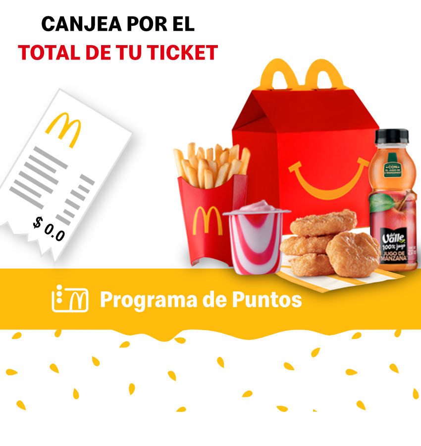 Cada punto tiene un valor de $1.00 M.N. (canjeables solo por productos de nuestro menú. Aplican restricciones). Para poder gozar de los beneficios de la tarjeta de puntos deberás de presentarla antes de realizar tu pago, de lo contrario no podrán ser abonados sus puntos. McDonald’s Veracruz no se hace responsable de abonar puntos de manera posterior a la compra por omisión u olvido de presentar la tarjeta. Los puntos son acumulables y podrás canjearlos en cualquiera de nuestros restaurantes participantes. (Aplican restricciones) Los centros de postres que participan son todos aquellos que están incorporados en restaurantes participantes. Los centros de postres que no participan en el programa de puntos son todos aquellos considerados remotos o a distancia. (ADO Xalapa, ADO Veracruz, Chedraui Centro Veracruz, Plaza Américas Veracruz planta alta, Orizaba Centro, Wal-Mart Plaza Valle, Centro Córdoba, Centro Orizaba).